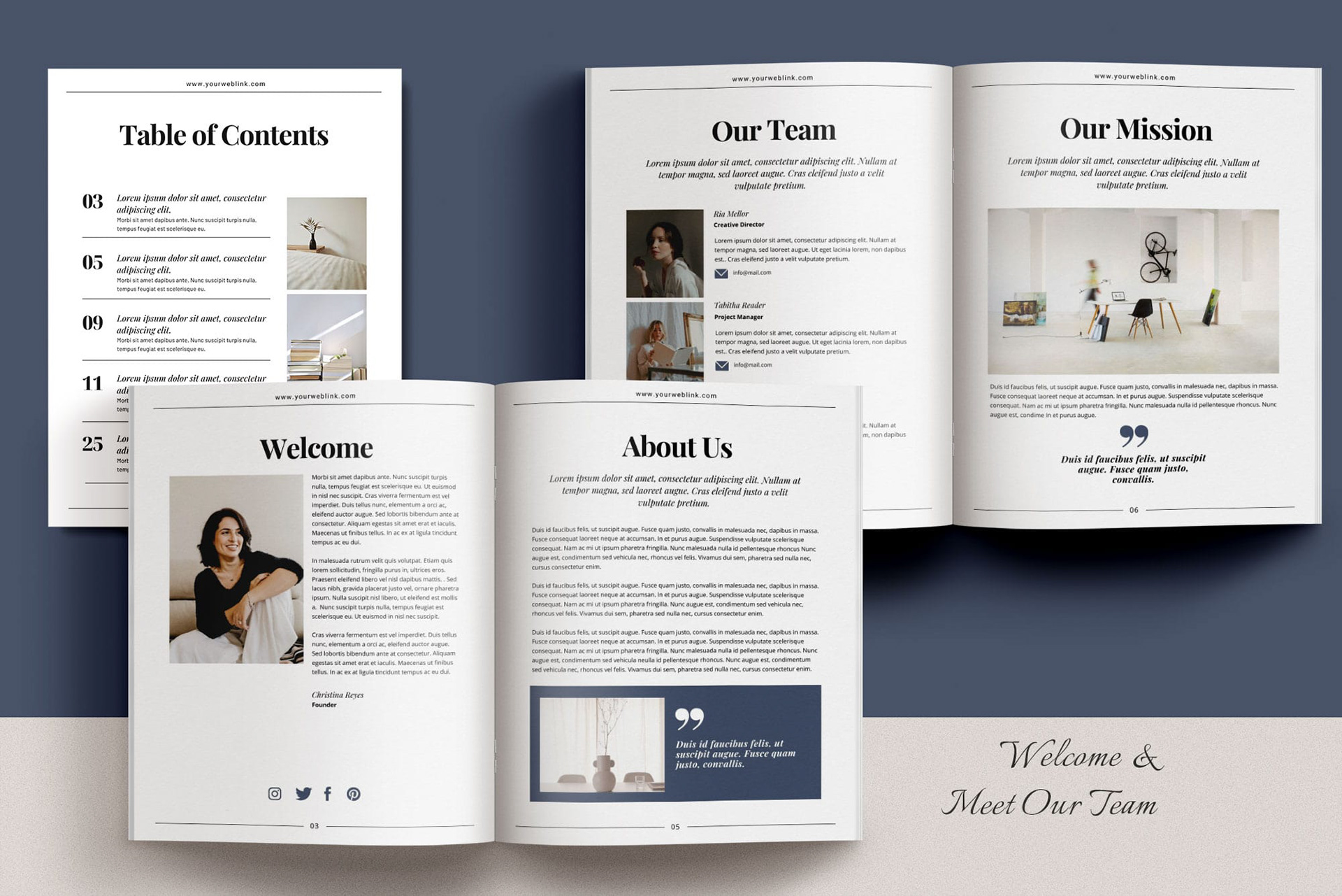 4 welcome & meet our team pages